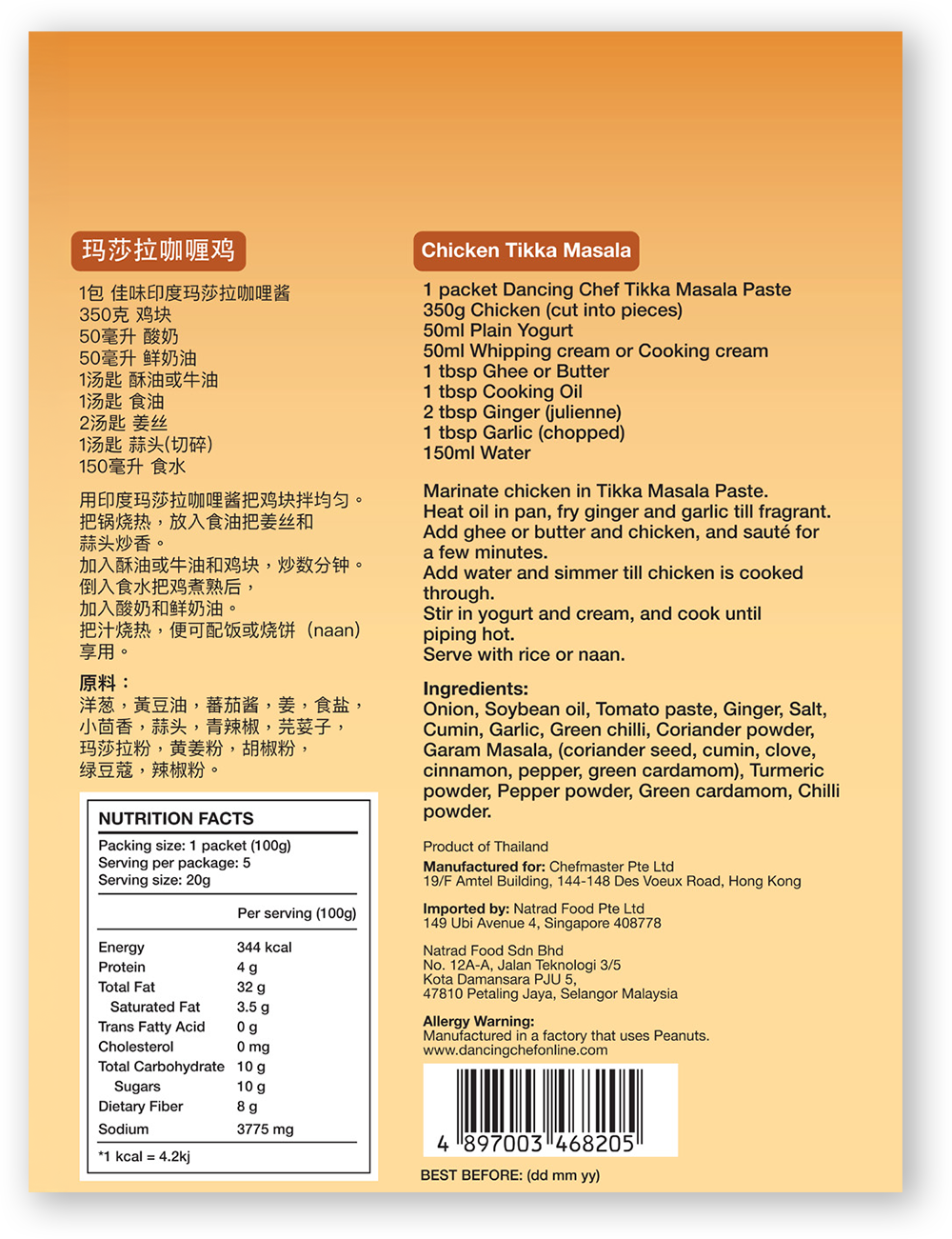 Tikka Masala is a tomato-based curry. Deliciously tangy and full flavoured, it is immensely popular curry dish.